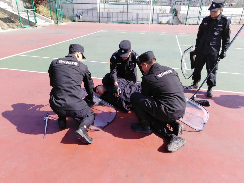为了进一步提高我校应对恐怖暴力事件的处置能力,确保学校安全稳定,为建国70周年营造良好的校园氛围,2019年9月20日上午,我校联合永吉县公安局巡特警大队在我校进行了反恐防暴演练活动。永吉县公安局国内安全保卫大队教导员朱兆宏、县公安局巡特警大队副大队长郭晓亮、安全保卫处治安科科长吴宇飞、学生工作处公寓管理中心主任魏丰彪、各学院辅导员代表及校园巡逻队、公寓值班员、学生保卫部成员等共40余人参加了演练活动。