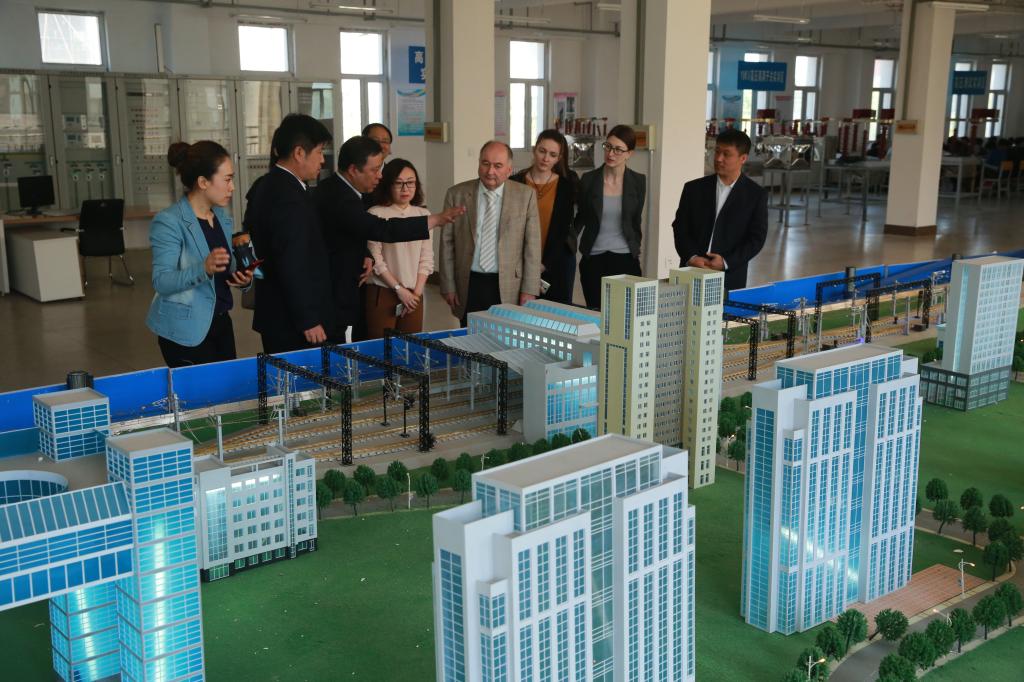 After the meeting, deputy p]resident Mr. Wang Hua accompanied the guests in visiting the campus, training centers and transportation practicing rooms. President of Moscow State University of Railway Engineering also had a thorough understand on the practical training equipment and students`after-school life of our school.
