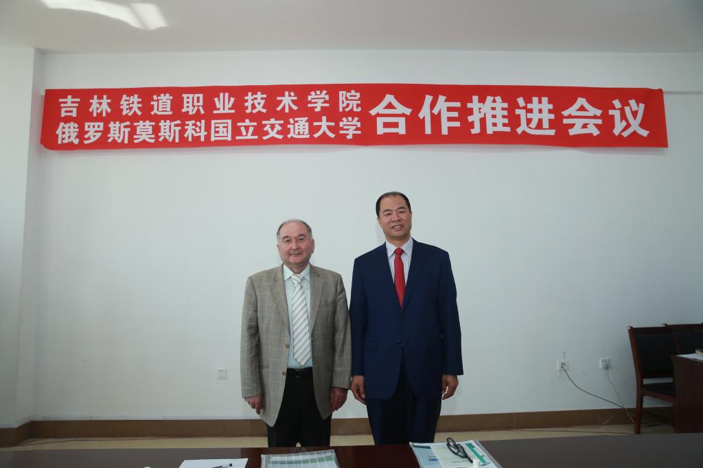 On 16th May, Glazkov Vladimir Nikolaevich, vice president of Moscow State University of Railway Engineering, Kuchinskaia Marina, Borunova Elena and Wang Huina, teachers of Moscow State University of Railway Engineering came to our college to discuss the cooperation issue. President Mr. Cao Bingzhi and vice president Mr. Wang Hua warmly received the guests.