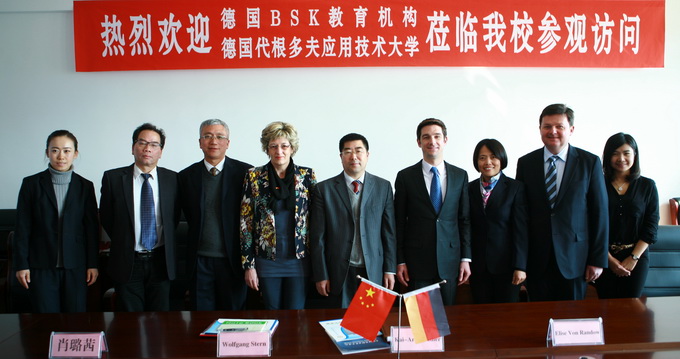 On the morning of March 10th, a 5-person delegation paid a visit to our college including Dr. Kai-A. Fiedler, CEO of BSK Educational Institution, Dr. Elise Von Randow, Chief of International Cooperation Department and Dr. Wolfgang Stern, President of International Education and Exchange College of Technische Hochschule Deggendorf. Dr. Zhou Yunlong, President of our college, together with Yu Sufang, Chief of Academic Administration Office, Professor Wang Xueming, Dean of Railway Rolling Stock Department and Sheng Li, Director of International Communication Center extended a warm welcome to them.