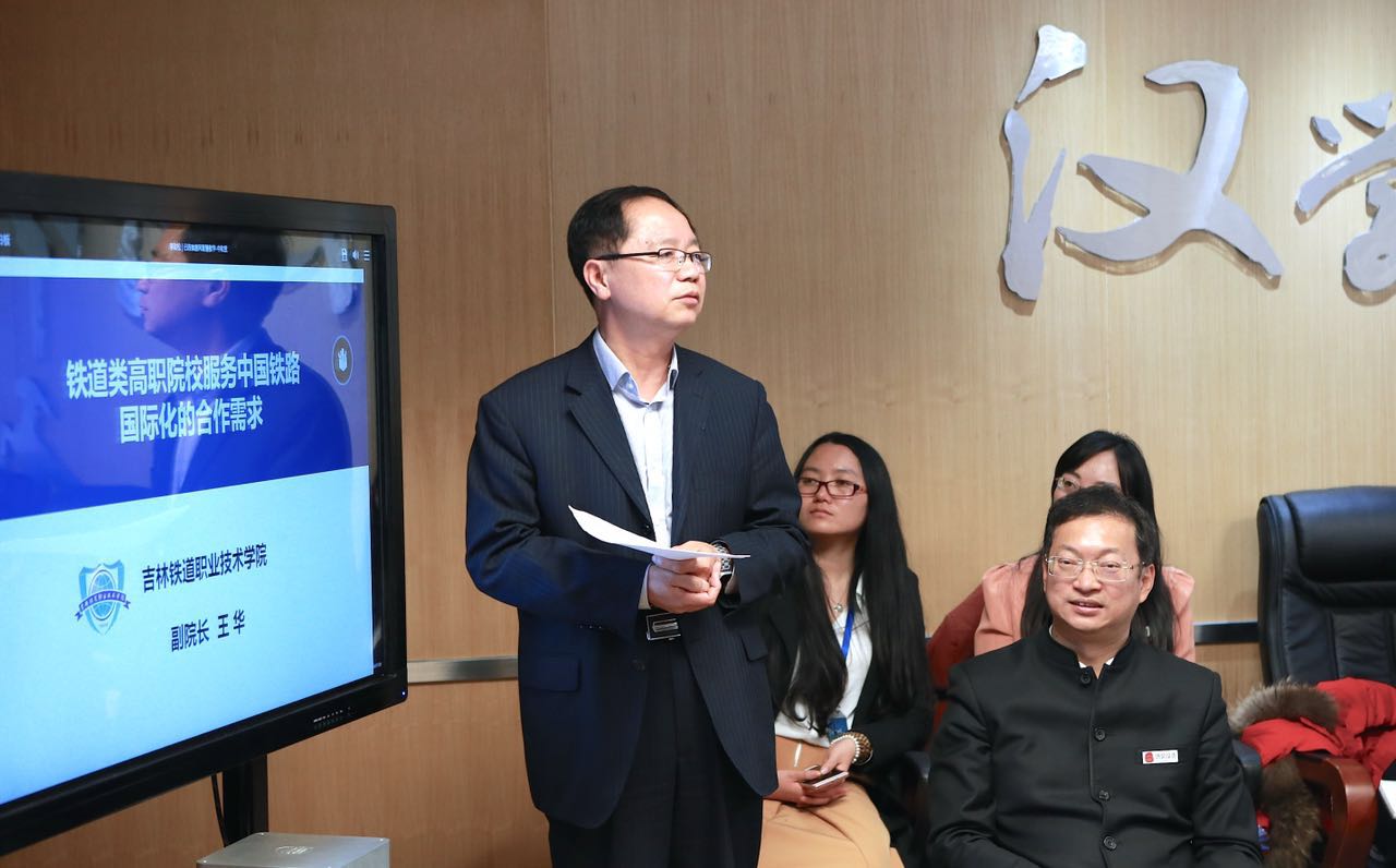 On March 2nd, our school was invited by the International Education Communication Center of Beijing Jiaotong University to attend the “Internet +” International Vocational Education Seminar.This seminar was jointly held by the International Education Communication Center of Beijing Jiaotong University and Tang International Education Group Holdings Limited. The seminar was hosted by Liu Yanqing, the director of the International Education Communication Center of Beijing Jiaotong University. Bao Tou Light Industry Vocational Technical College, Liu Zhou Railway Vocational Technical College,Baotou Railway Vocational & Technical College and Beijing Information Technology College together attended the seminar. Mr. Wang Hua, the deputy president representing our school delivered the speech. Mrs. Sheng Li, the director of International Communication Center and Mrs. Liu Shiyu also attended the seminar.