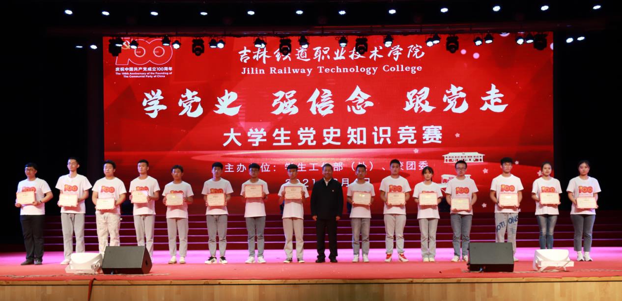 为庆祝中国共产党成立100周年,深入推进党史学习教育活动,引导全校青年大学生学史明理、学史增信、学史崇德、学史力行。2021年6月4日在大学生活动中心,由学生工作部(处)和校团委联合主办的“学党史、强信念、跟党走”大学生党史知识竞赛成功举办,全校共9支代表队伍27人参加比赛。学校党委书记宋春辉、校长曹炳志、党委副书记徐彤宝、副校长田雷、纪委书记苏春年、副校长李欣、副校长张辉、学校相关部门负责人、全体学工干部和1000名学生代表现场观看活动。