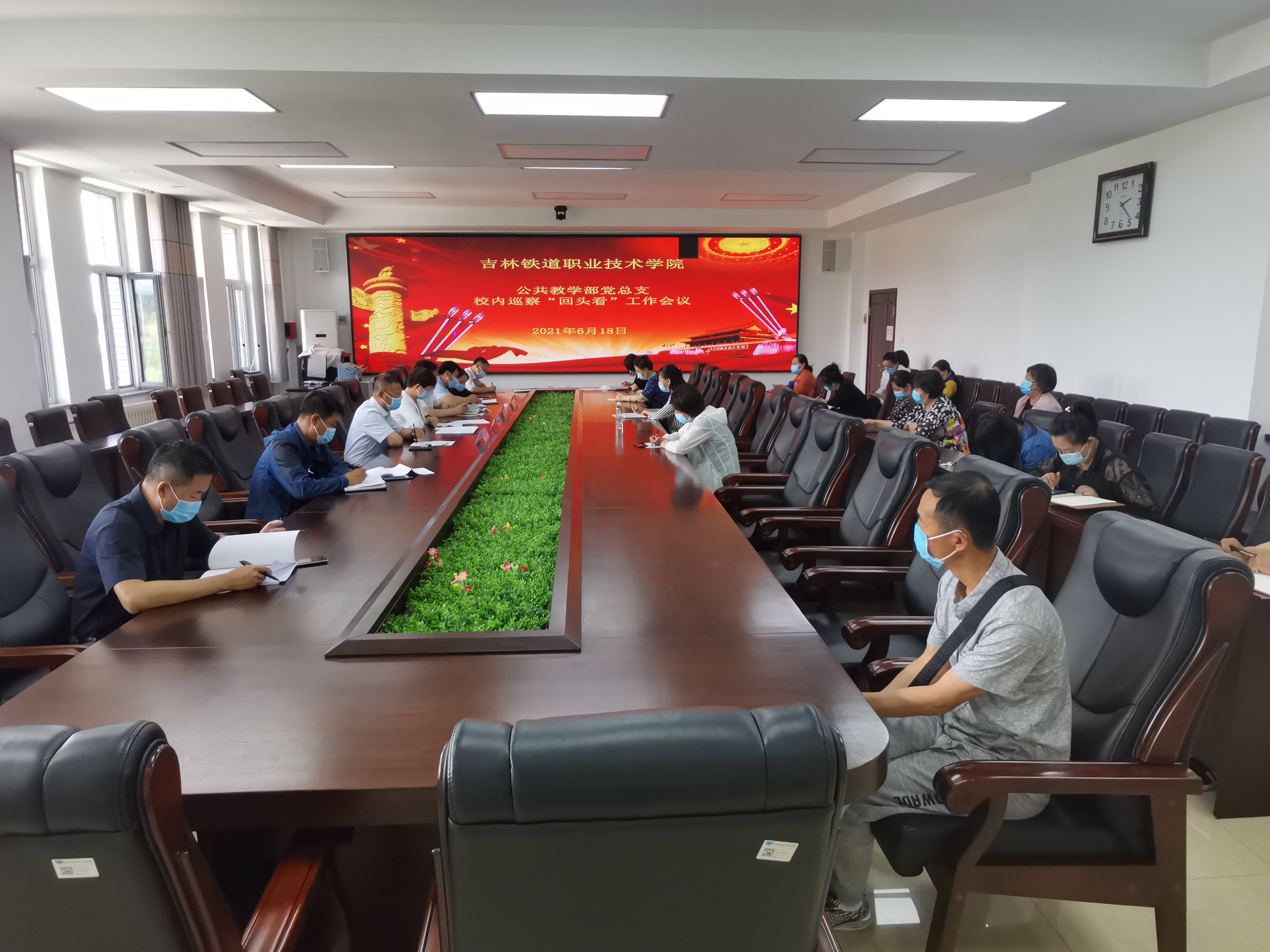 2021年6月18日下午,公共教学部在行政楼三楼第2会议室召开校内巡察“回头看”工作会议。会议由公共教学部主任李生主持,参加会议的有巡察组组长高丽娴,副组长刘德强,巡察组成员王若民、王冲、周敏、刘格成,以及公共教学部全体教师。会议共进行了四项内容,分别是汇报巡察反馈问题的整改落实情况,巡察组就巡察工作提出意见、民主测评和民主意见征集。