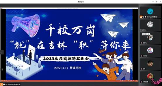 为解决毕业生就业难的问题,管理学院积极联系24家合作用人单位,并于2022年11月11日下午,举办了2023届毕业生“就”在吉林“职”等你来第一季校园招聘“云端”双选会,促进毕业生更充分、高质量就业,最大程度满足毕业生求职需要。会议由毕业年级辅导员于沛弘主持,学院2023届毕业生线上线下全员参加会议。
