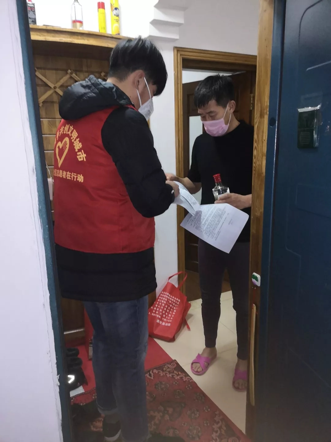 个人宣言:我深知自己应该积极承担社会责任。在这个没有硝烟的战场上,我不能像医护人员一样奋战在治病救人的第一线,但我可以奉献自己的力量,在村镇防疫战中冲在第一线。