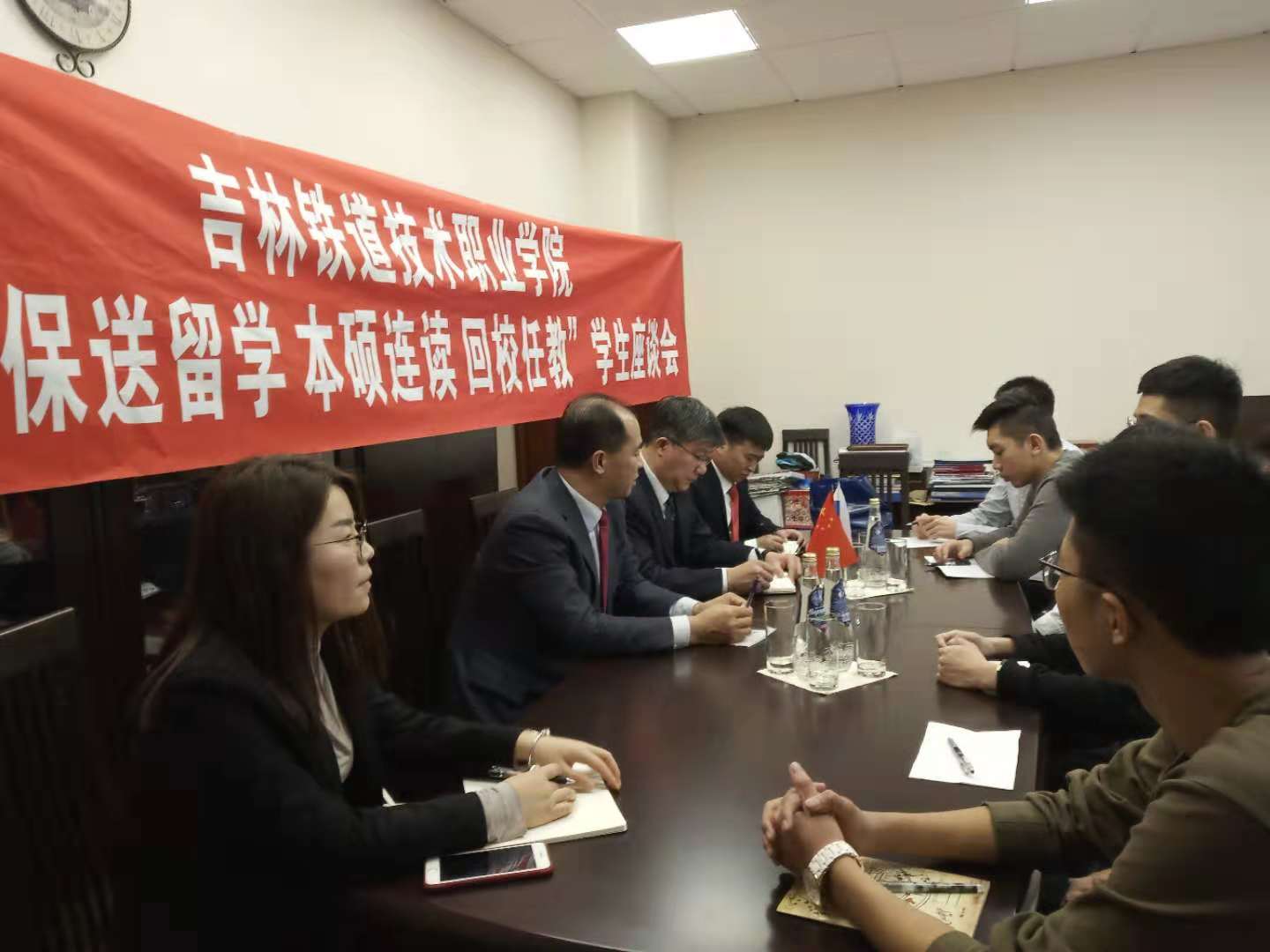 11月12日,在俄罗斯交通大学组织召开了“保送留学,本硕连读,回校任教”学生座谈会。座谈会上,曹炳志院长等一行五人都对学生们就生活学习、人身安全、理想信念等方面提出了具体要求。学生们纷纷表示要珍惜机遇、励志勤学,刻苦磨练,不忘学校的殷切期望和苦心栽培,坚定理想信念,练就过硬本领,培养高尚情操,努力成为铁道类专业领域人才,回报学校的培养。
