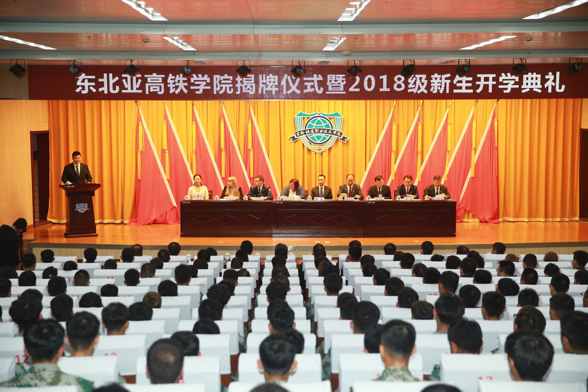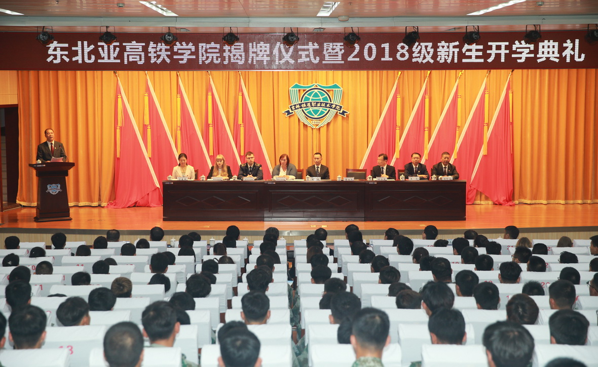 首先,由王迪调研员、曹炳志院长、柳•弗•卢奇尼娜处长、格•阿•切列佐夫院长为东北亚高铁学院揭牌。接着,东北亚高铁学院2018级新生开学典礼在庄严的国歌声中拉开帷幕。