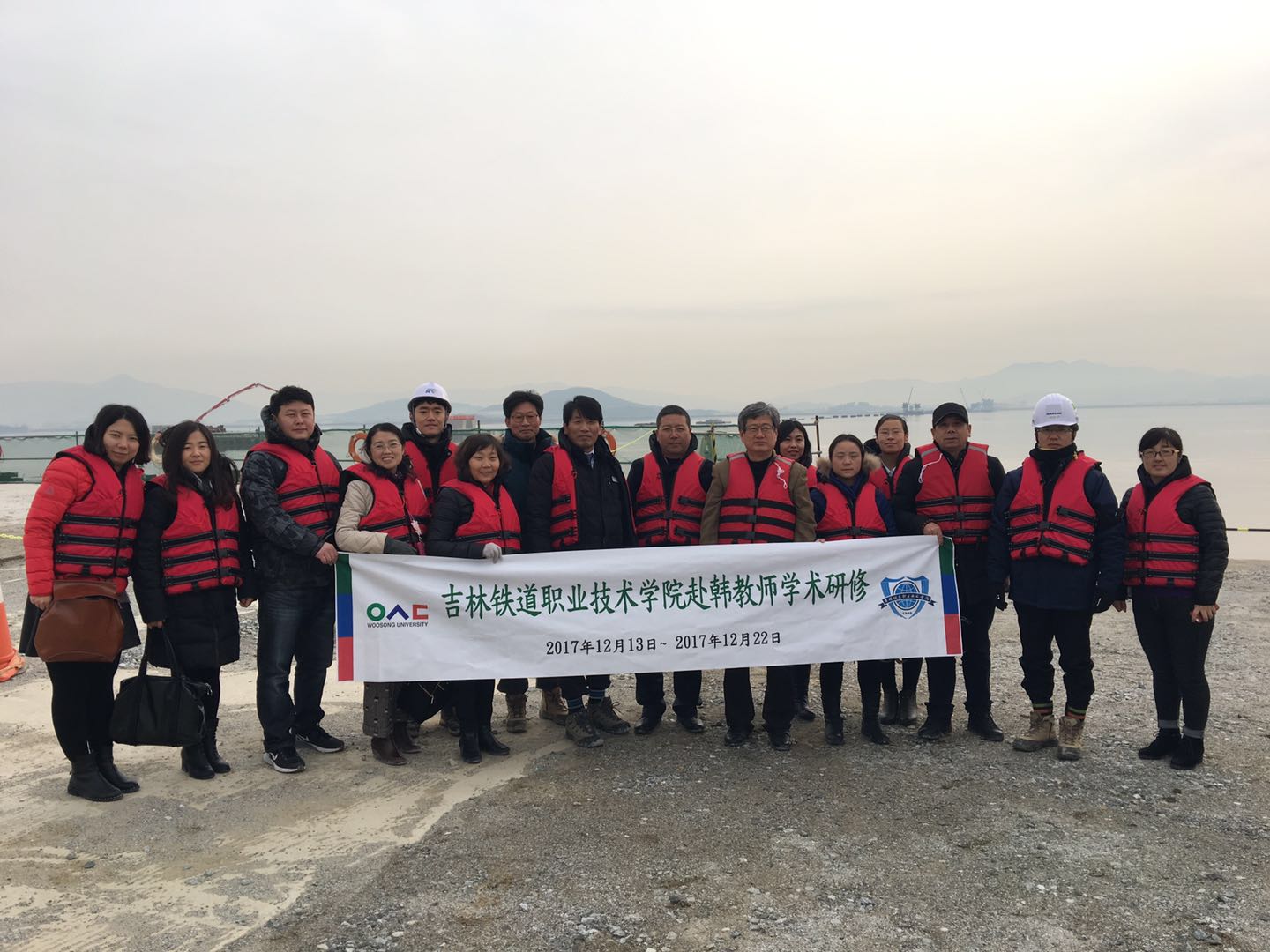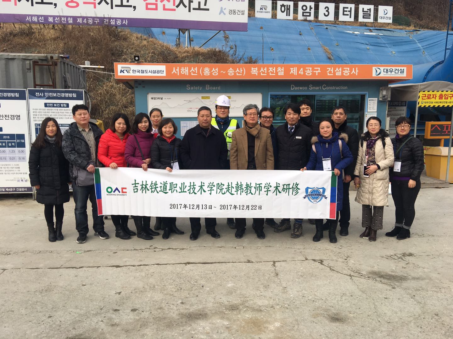 13日晚,我院研修团一行10人参观了又松大学Solbridge国际商学院,甘瑞瑗校长和郑灿默教授热情接待了全部中方研修教师并进行友好交流。14日,由郑灿默教授启动研修仪式,铁道物流学院各专业系主任均出席会议,并就铁道物流学院的办学理念和办学特色进行交流。随后几天,元洪善博士、郑灿默院长分别为作了“铁道信号通信新技术(LTE-R)”和“韩国铁道建设的理解”的特讲。除理论研讨外,在郑灿默院长的积极联系下,研修访问团赴西海线复线电车建设现场,由铁道公社张峰熙处长做“西海线复线概况”介绍之后,研修团全体教师深入隧道、桥梁施工现场观摩学习。