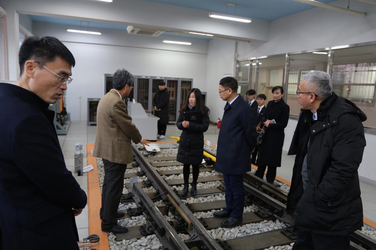 随后,访问团深入考察了又松大学铁道物流学院,深入课堂观摩了理实一体化教学过程,并与教师深入的交流。同时就招生情况进行了分析。行程的最后,访问团参观考察了韩国铁路设施,考察了韩国大田火车站、首尔火车站、乘车体验了大田-首尔间高铁。在韩期间,访问团一行还亲切慰问了我院在韩深造的张兴源同学和王卓同学,并嘱咐两位同学要好好学习,早日完成学业。
