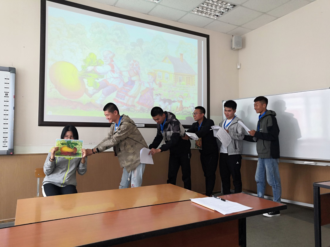 开班仪式结束后,俄方安排了俄语培训课程。课程轻松活泼,以唱歌填词以及话剧表演的形式让同学们轻松记住了单词并完成了俄语对话,寓教于乐。同学们对这种授课方式很感兴趣,参与度与完成度都很高,也得到了俄方教师的高度评价。