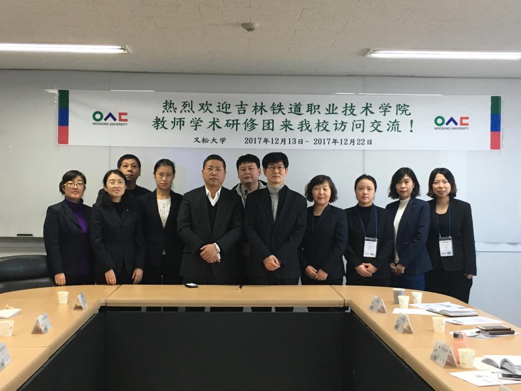 应韩国又松大学的邀请,学院党委副书记徐彤宝,铁道运输分院谢立宏老师、城市轨道交通分院刘秀丹老师、铁道信号分院刘烨老师、铁道车辆分院滕莉娜老师、管理分院孙素老...