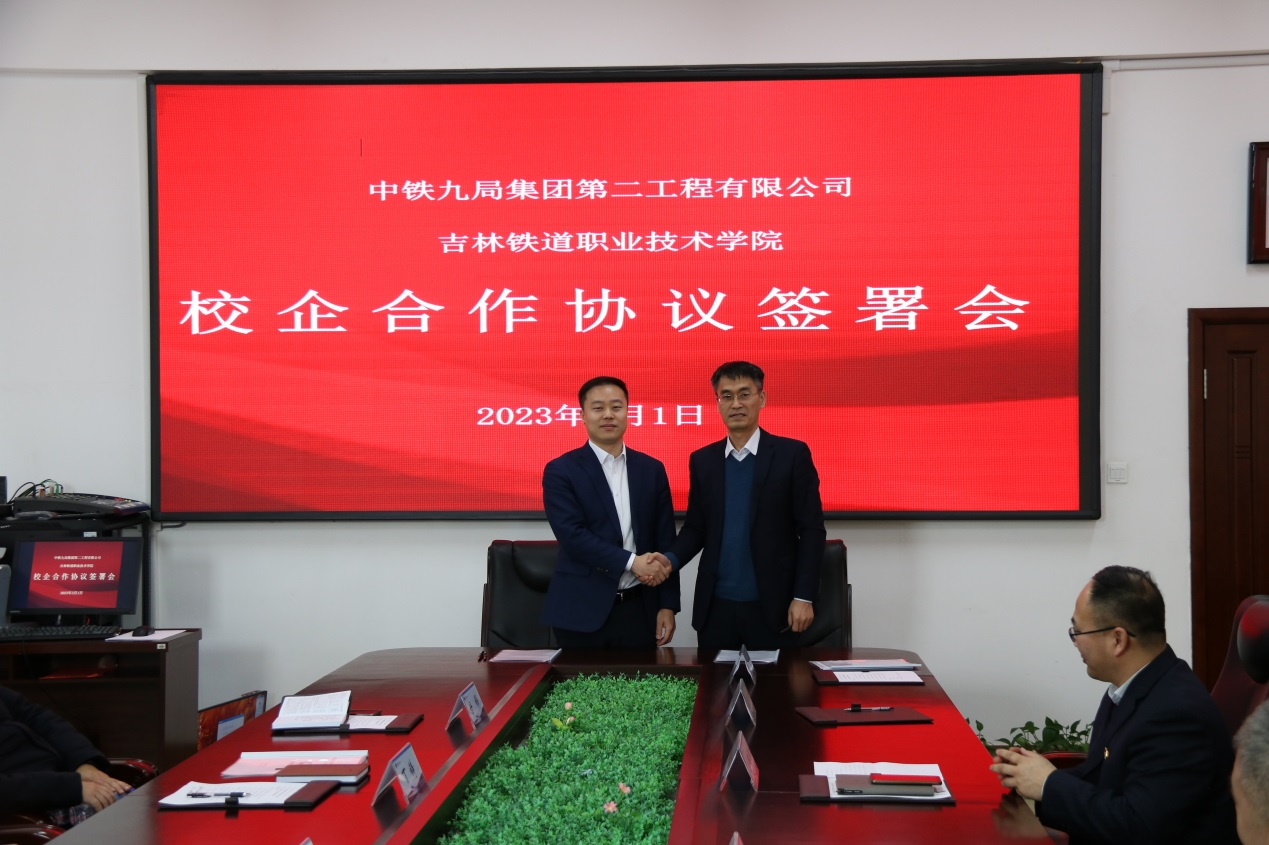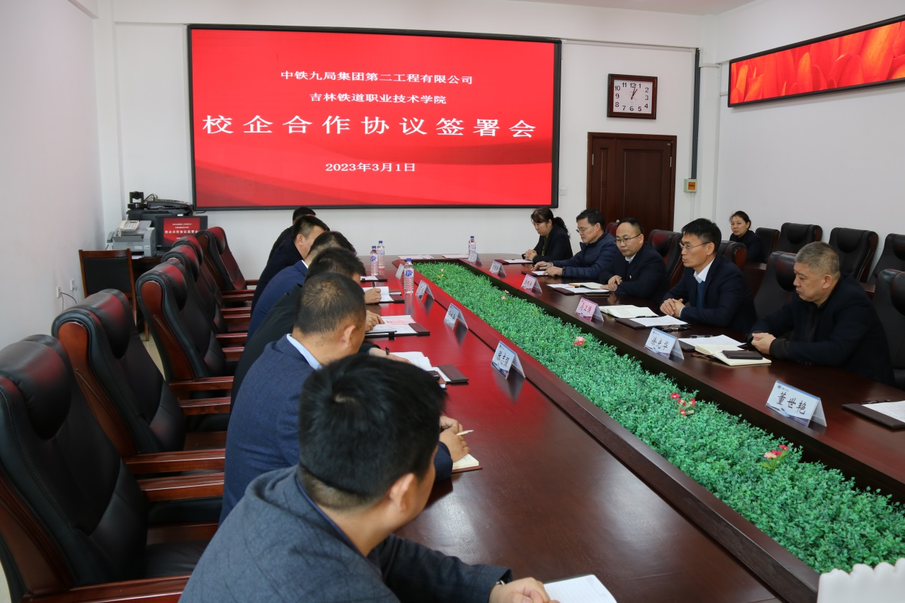 2023年3月1日,我校与中铁九局集团第二工程有限公司、中铁九局集团第五工程有限公司在学校第一会议室举行产学研创校企合作签约仪式。
