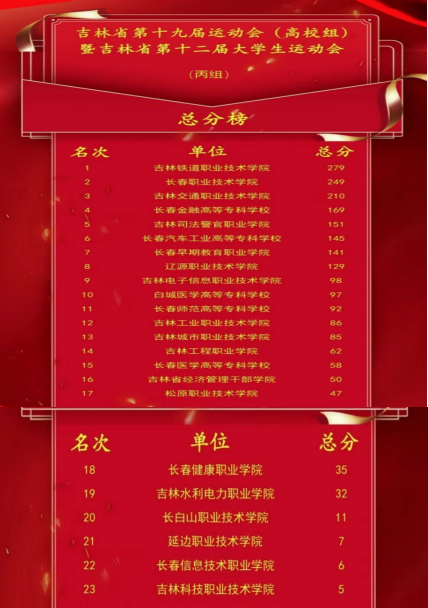 5月30日,随着吉林省第十九届运动会(高校组)暨吉林省第十二届大学生运动会田径比赛的落幕,本届吉林省运动会(高校组)的14个比赛项目均已完赛。