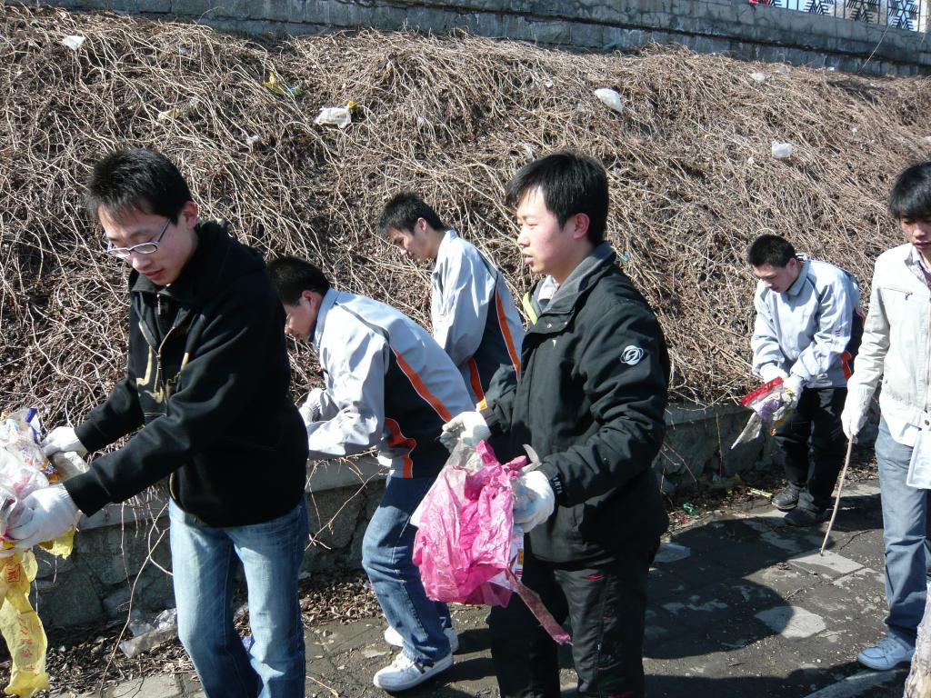 为了保护母亲河,唤起人们的注意,同时响应院团委组织的“弘扬雷锋精神、参与志愿服务、创建和谐校园”的主题活动,汽车工程系部分志愿者自发组织了清理松花江沿岸白色垃圾的活动。同学们不怕脏,不怕累,用自己的双手清理了垃圾,美化了江城。尽管我们的力量是那么微薄,可我们却相信,我们一次行动就好象是一盏灯,灯光亮一些,我们身边的黑暗就少一些;我们还相信,文明就在我们身边,离我们很近很近,近得触手可及;我们更相信,我们每个人迈出一小步,就会使社会迈出一大步。