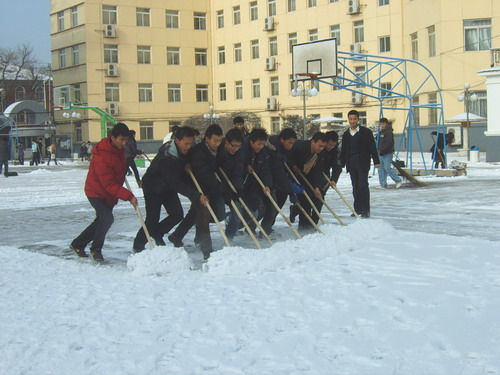 2008年11月29日早晨,飘了一夜的雪终于停了,校园内成为了一片银白色的世界。9:00时,学院党校第四期培训班结业考试开始,考试时间90分钟。经过了五天的党校学习,学员们对党的基本知识和基本理论的有了进一步了解,对如何以实际行动争取早日加入党组织有了明确方向,普遍反映有了较大收获,受到了一次深刻的党性教育。由于广大学员们在学习过程中能够认真听讲,积极讨论,坚持自学,努力思考,因而答卷很顺利。当看到学院后勤职工在清雪时,部分先完成答卷的学员就陆陆续续加入了清雪劳动的行列。劳动的热情迅速蔓延开来,学员们考试结束后都主动加入了劳动队伍,连没有参加党校学习的学生干部和普通同学也纷纷赶来清雪。大家干劲十足,互相帮助,互相鼓励,积极的态度、高涨的热情和寒冷的天气形成了鲜明的对比。整个扫雪过程有序而迅速,经过一个小时的劳动,校园道路、操场上的积雪就被清扫干净,方便了师生行走。经过劳动,深刻地体现了学员们关心他人、情系学院的浓厚感情和志愿服务、无私奉献的自觉性。也可以看出,经过党校的学习培训,广大学员们真正树立了全心全意为人民服务的意识,思想政治素质有了较大的提高。