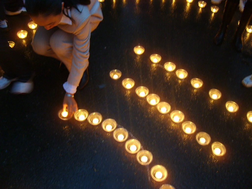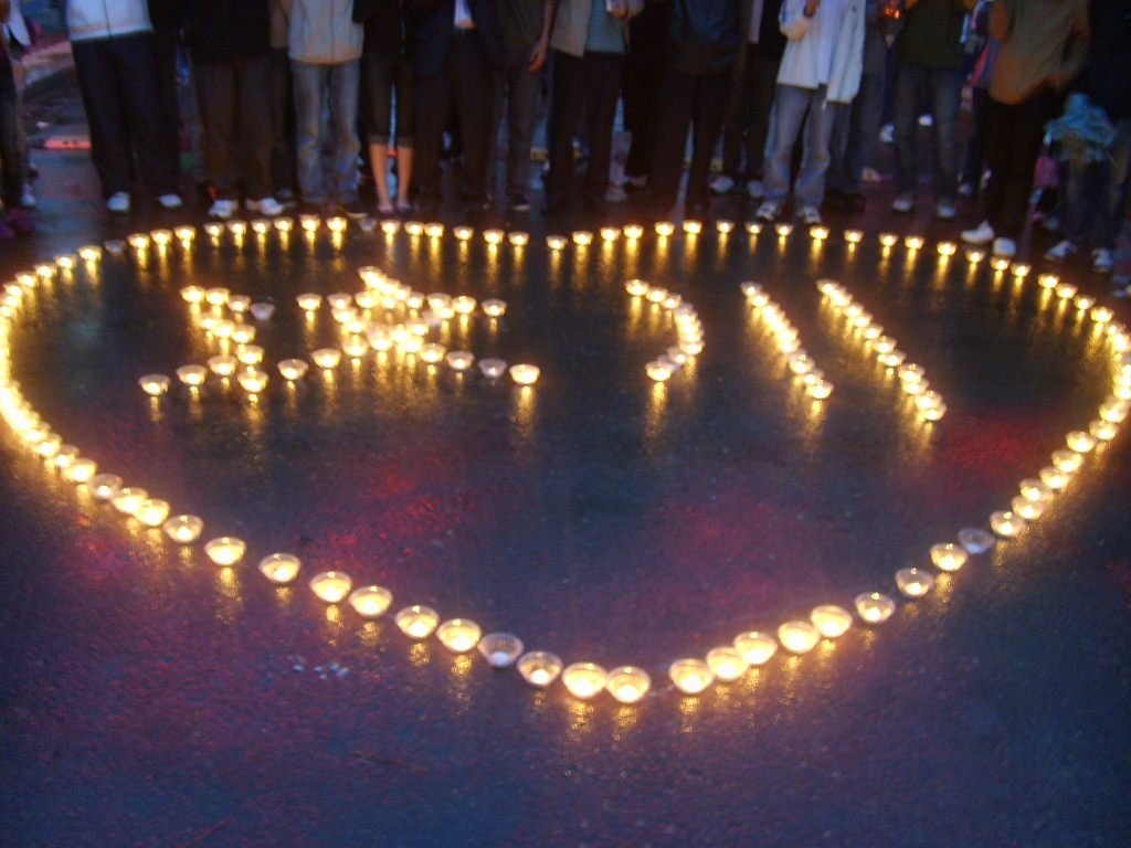 5月22日晚,在www.yuebo136.com 东校区门前,由一根根蜡烛组成了一个大大的“心”形,这带有爱心的烛光在绵绵细雨中摇曳着。这是电气工程系组织的为“四川地震灾区人民烛光祈福”活动,以最真挚的感情献上了对灾区人民的爱心和祝福。