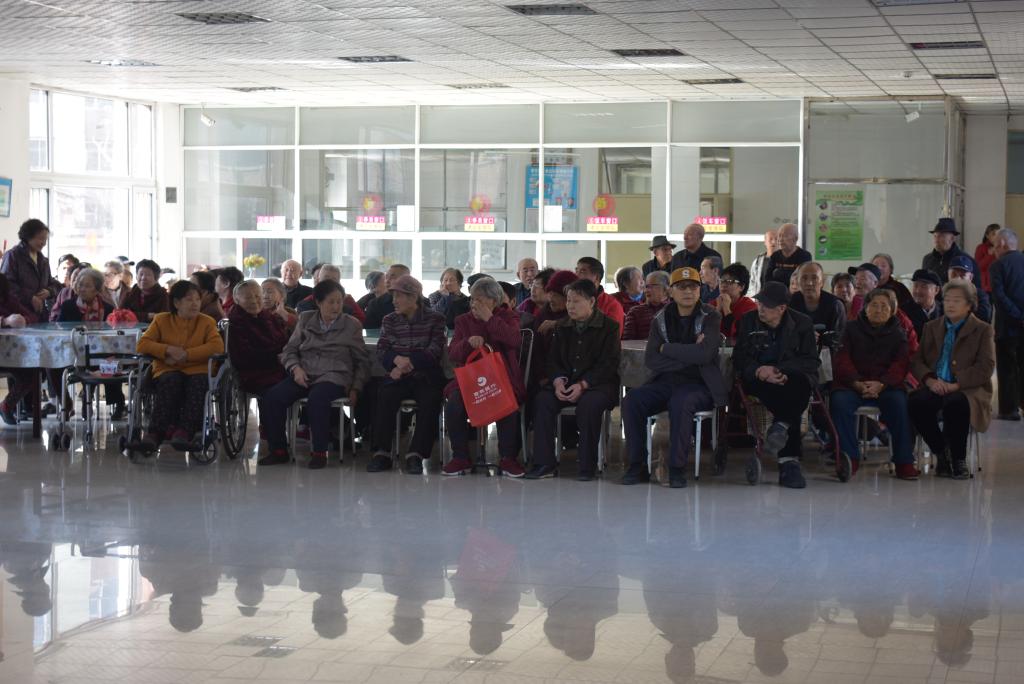 室外天寒地冻,室内温情浓浓。大家分工合作,扫地、擦玻璃、将庭院内外打扫的整洁明亮,各类物品摆放井然有序;参加文艺演出的同学们精神饱满,合唱《当那一天来临》、《喀秋莎》、《国家》,歌曲独奏《突然好想你》、《再回首》以及小品《年轻的老人》等,引来阵阵掌声,温馨的小屋内到处是欢声笑语,老人们的脸上洋溢着幸福的微笑。志愿者们和老人坐在一起,看节目,话家常,共同度过了一段美好的时光。