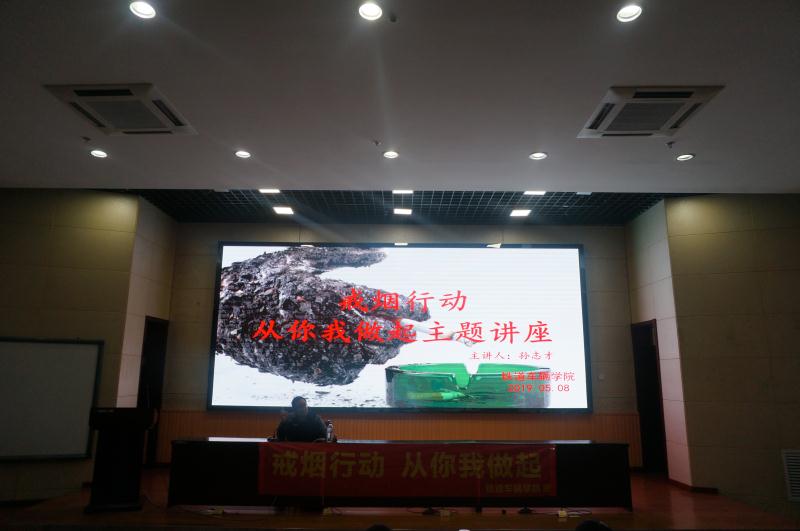 讲座上,孙老师通过吸烟对健康有哪些危害、自己为什么戒烟、戒烟后身体发生了哪些变化以及如何戒烟等四个方面来跟同学们分享了自己的戒烟经历,希望通过自己成功的戒烟经验给所有参加讲座的同学以榜样的力量和坚定的信心。铁道车辆分院动车组检修技术1704班李阳向同学们宣读了铁道车辆分院《戒烟倡议书》,铁道车辆分院学办主任张强带领参加讲座的同学共同宣读了《戒烟誓词》。