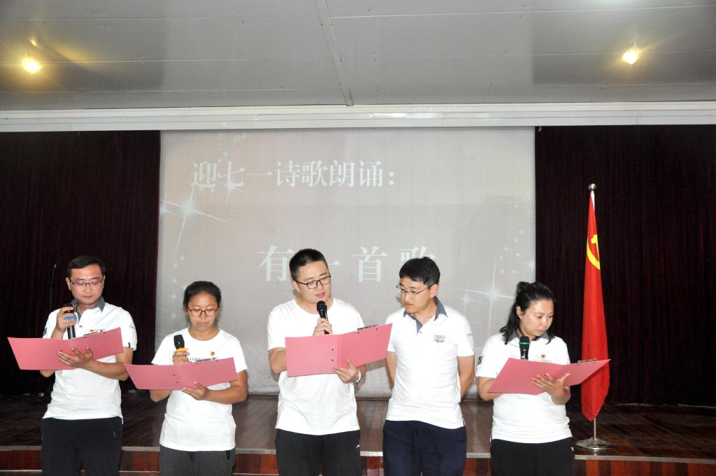 活动中,教工党支部与学生党支部的党员同志以诗朗诵《有一支歌》深情地表达了在党爱党、在党护党、对党忠诚、为党奉献的党员情怀。随后,浑厚深沉的歌曲合唱《没有共产党就没有新中国》将我们带回那个硝烟滚滚、战火纷飞的年代。中国共产党领导中国人民经过大革命、土地革命和抗日战争、解放战争艰苦卓绝的浴血奋战,缔造了一个崭新的中华人民共和国,实现了中国人民“站起来”的百年追求。