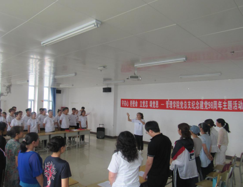 活动中,管理学院党总支副书记杨秀进行发言,发言内容使全体师生坚定理想信念,不忘入党初心,牢记入党誓词,扎实工作,为吉铁院建设和发展贡献自己的力量,随后,她带领全体党员面对党旗重温入党誓词。