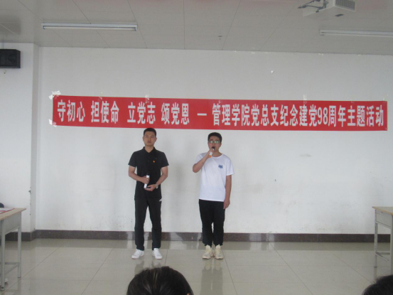 为了纪念中国共产党建党98周年,讴歌中国共产党的丰功伟绩,激励管理学院党员队伍的向心力、凝聚力。6月28日下午,管理学院党总支举办《守初心担使命立党志颂党恩》纪念建党九十八周年主题活动,管理学院全体党员教师和学生入党发展对象,入党积极分子参加此次活动,活动由学生党支部书记高露主持。