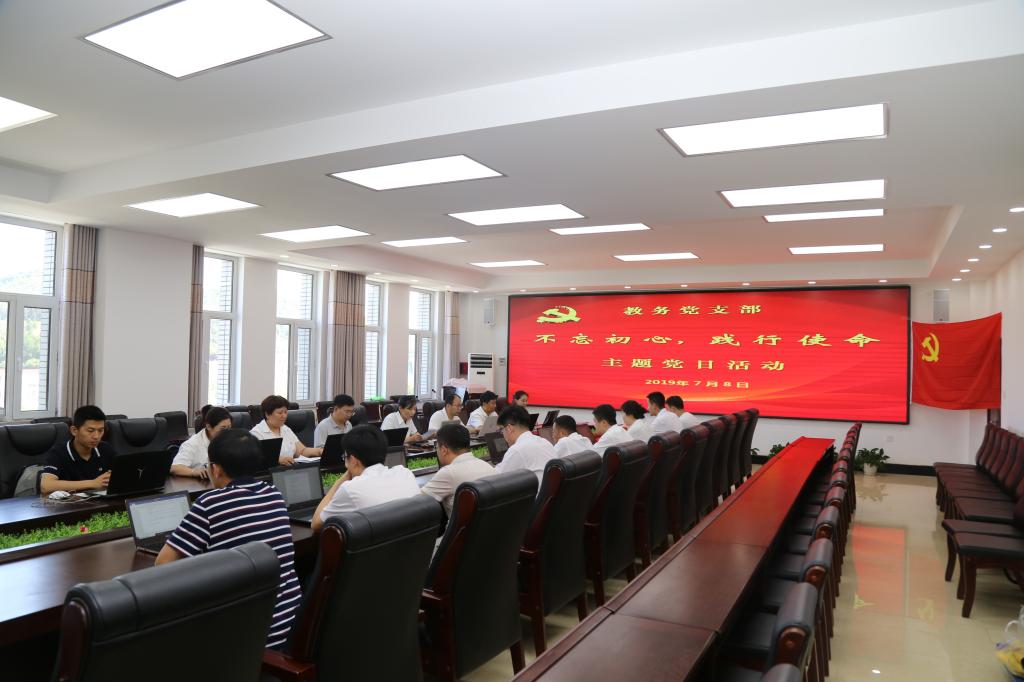 为纪念中国共产党建党98周年,全面宣传贯彻落实党的十九大精神,落实学校党委2019年重点工作部署,进一步增强党组织的凝聚力和战斗力,激励党组织和广大党员继承和发扬党的光荣传统,增强党性意识,凝聚智慧力量,教务党支部于7月8日开展“不忘初心,践行使命”主题党日活动。教务党支部书记张辉主持活动,机关党总支书记周环宇参加活动。