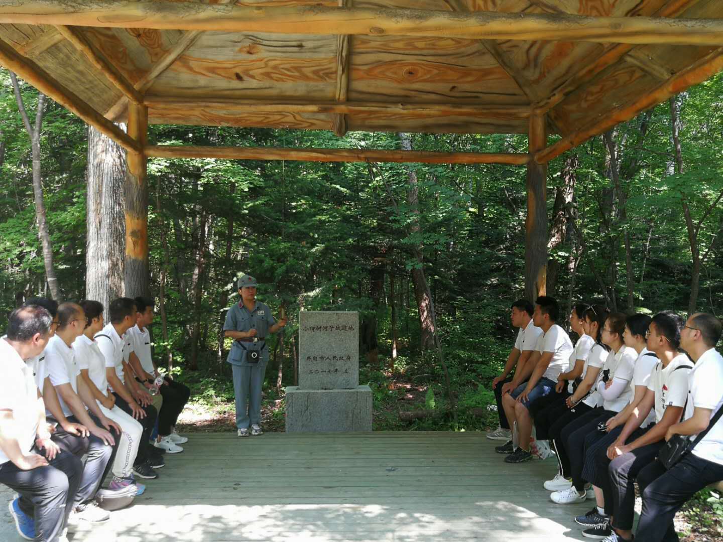 在密营中,全体党员来到杨靖宇雕像前,郑重、严肃地重温了入党誓词。随后,全体党员、教师在抗联纪念馆吴馆长的带领下,沿着山路先后走过了红石砬子会议遗址、李二桥、杨靖宇居住地等遗址,实地参观了饮马池、碾盘、司令部、青松灶等杨靖宇将军战斗、生活过的遗迹并聆听介绍,大家真切地感受到了那段艰辛困苦而又不屈奋战的抗联岁月。