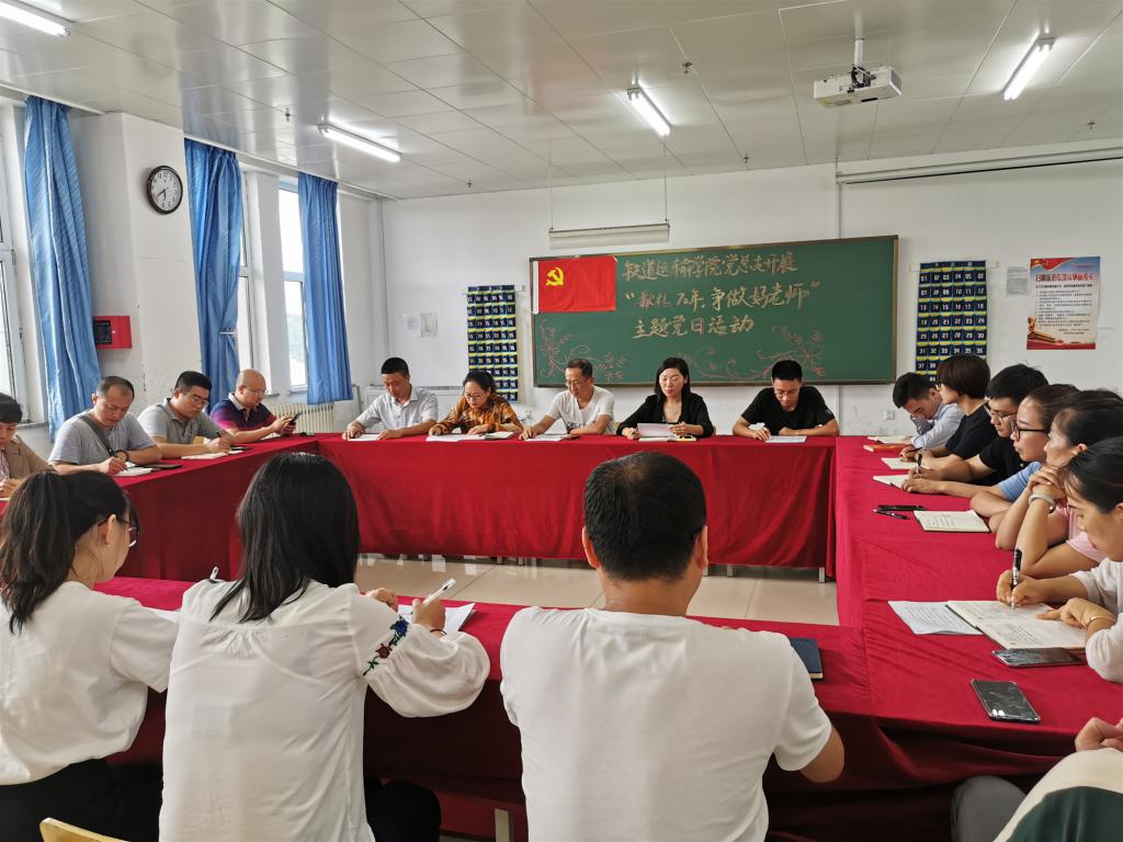 为弘扬高尚师德师风,热烈庆祝9月10日第35个教师节,9月6日下午,铁道运输学院党总支组织全体党员召开了“献礼七十年,争做好老师”主题党日活动,党总支副书记李惠娟,院长于伯良、副院长吴荣波以及全体党员参加活动。活动由党总支组织委员孟家辉主持。