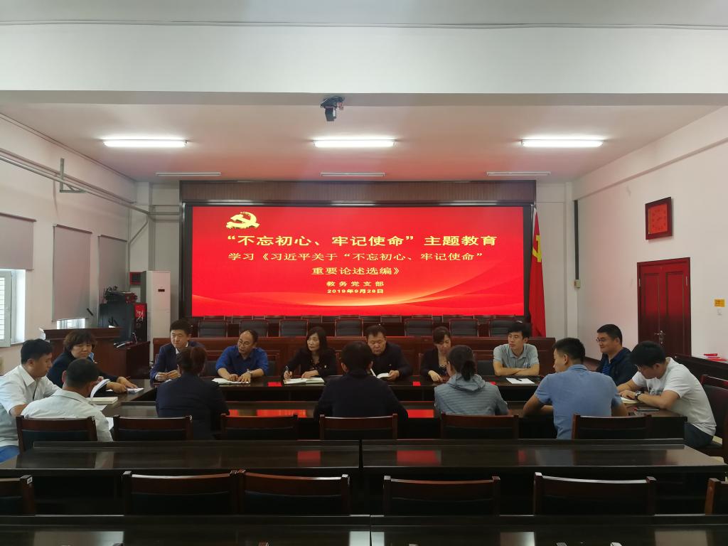 为贯彻落实学校“不忘初心、牢记使命”主题教育工作部署,切实把会议精神落实到位,教务党支部于9月28日,在办公楼五楼第三会议室开展了“不忘初心,牢记使命”主题党日活动。教务党支部书记张辉主持活动。