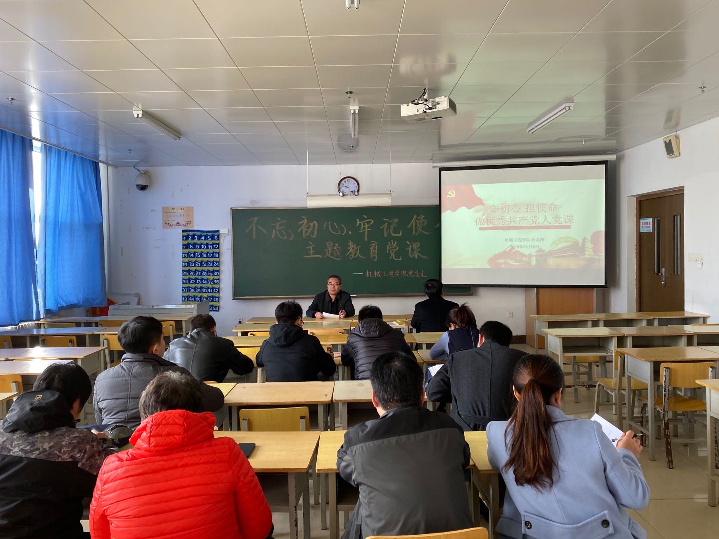 在党课上,刘锡权以”不忘初心,牢记使命,更好的完成立德树人根本任务”为题,通过马克思主义的信仰注定了我们的初心和使命;不同历史时期中党的初心和使命;新时代教育工作者的初心和使命讲解了共产党的初心和使命的传承。
