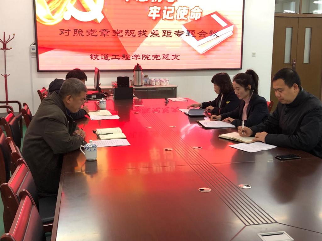 11月13日,按照学校“不忘初心、牢记使命”主题教育部署安排,铁道工程学院党总支全体总支委员在实训楼301召开对照党章党规找差距专题会议。学校组织部副部长马卫强莅临指导,专题会议由党总支副书记韩兵兵主持。