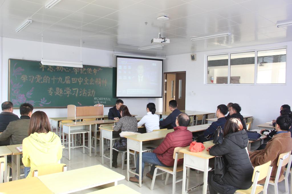 活动中,与会同志观看了《中国共产党第十九届中央委员会第四次全体会议公报》视频,随后,党总支副书记刘振波带头学习了《中共中央关于坚持和完善中国特色社会主义制度、推进国家治理体系和治理能力现代化若干重大问题的决定》和“习近平关于十九届四中全会《决定》的说明”,学习了我国国家制度和国家治理体系多方面的显著优势、总体目标和工作要求,他强调:要深入学习宣传贯彻党的十九届四中全会精神,坚定中国特色社会主义制度自信,落实好立德树人的根本任务。一是要迅速兴起学习宣传贯彻十九届四中全会精神热潮,原原本本学习四中全会有关文件。二是要扎实做好第二批主题教育各项工作。坚持读原著、学原文、悟原理,推动学习宣传贯彻习近平新时代中国特色社会主义思想走深走实。三是要坚决落实好立德树人的根本任务。持之以恒加强学院党的建设,着力提升党建工作质量,为学校各项事业发展提供坚强保证。