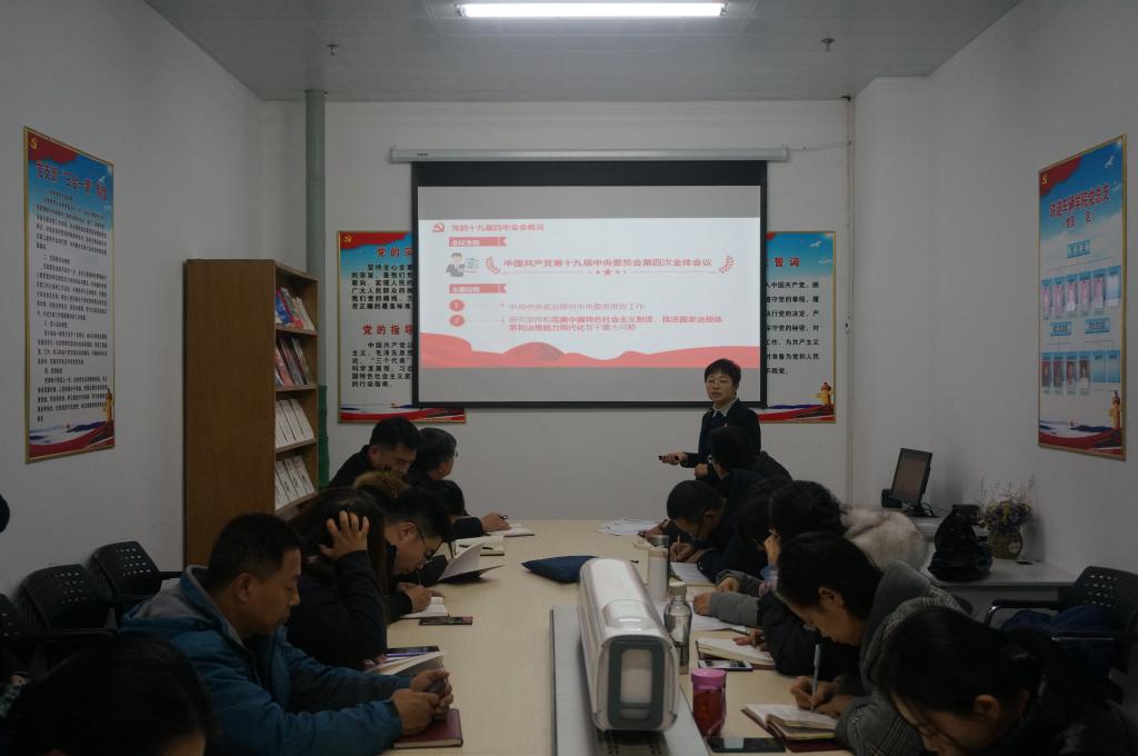 高丽娴带领全体党员从党的十九届四中全会概况、党的十九届四中全会内容重点解读、解析全会公报关键词、党的十九届四中全会召开的意义四个方面进行学习,共同回顾党的十八大以来历届中央全会的主题,介绍十九届四中全会参会情况、主要议程、审议的文件和总体目标等全会概况,重点解读全会总体目标、13个完善和坚持、两项人事信息三方面内容,通过14个键词对全会公报进行深入解析,更深入理解了党的十九届四中全会召开的意义,为更好贯彻落实党的十九届四中全会精神奠定了思想基础。