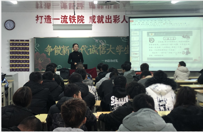 为深刻领会党的十九届四中全会精神,聚焦国家治理体系和治理能力建设,着力引导当代青年大学生更好地践行社会主义核心价值观,为深入推进“不忘初心,牢记使命”主题教育活动,更好地践行社会主义核心价值观,铁道车辆学院于2019年11月21日,在教学楼407教室举办“争做新时代诚信大学生”专题讲座,讲座由辅导员陈迪主讲,2019级全体学生干部参加学习。