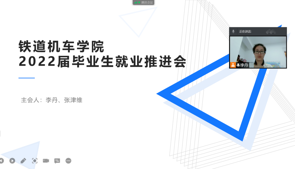 为贯彻落实我校2022届毕业生就业工作推进会议精神,积极应对疫情下就业形势的新变化、充分满足毕业学生新需求,积极把握学生就业选择的关键节点,铁道机车学院于3月26日,召开2022届毕业生线上就业推进会,会议由辅导员李丹主持,辅导员张津维和2022届未就业毕业生参加。