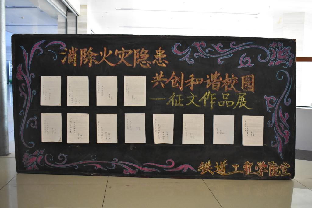 11月末,铁道工程分院团委在三公寓大厅摆放以“提高安全意识 共创和谐校园”为主题的消防安全图片展板,开展消防安全宣传,并要求同学们切实结合身边发生的火灾事故,写一篇消防安全主题教育的个人总结。
