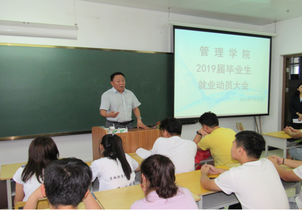 为贯彻落实学院关于2019届毕业生就业工作部署要求,抢抓机遇,早做准备,充分调动每一个同学的就业积极性和主动性。7月12日,管理分院在教学楼812教室举行2019届毕业生就业动员会。管理分院党总支副书记李惠娟、分院副院长郑学建、学工办主任高露、辅导员杨霄、2016级全体同学参加了会议。会议由管理分院学工办主任高露主持。