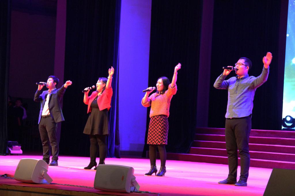 随着《加油!Amigo》的活力舞蹈,迎新晚会拉开了序幕。铁道车辆分院的青年教师郭迪、王伟楠、张晶和包丽静为我们带来歌曲的演绎,为新生们送上祝福,希望明天会更好。