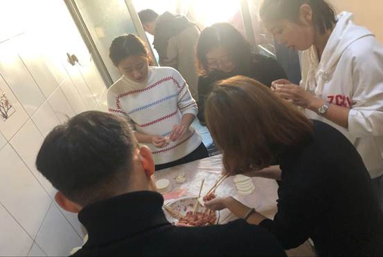 在河东社区副书记孙飞、副主任王丹的带领下来到社区失独老人高月华的家中。高月华老人的独生女在5年前的一场意外中去世,老人目前独自一人生活,患有血栓行动不便。大家与老人亲切交谈,了解她的生活情况,送上慰问物品。11月7日正值立冬,管理分院师生自带食材为老人包饺子共进晚餐,场面其乐融融。晚餐结束后,志愿者们齐力为老人打扫房间,老人连声表示感谢,眼中泛起泪花激动的说:“我已经一年没吃过饺子了,多亏了老师和同学们,感谢大家”。同学们以实际行动体现大家对老人的亲切关怀,温暖了老人的心。