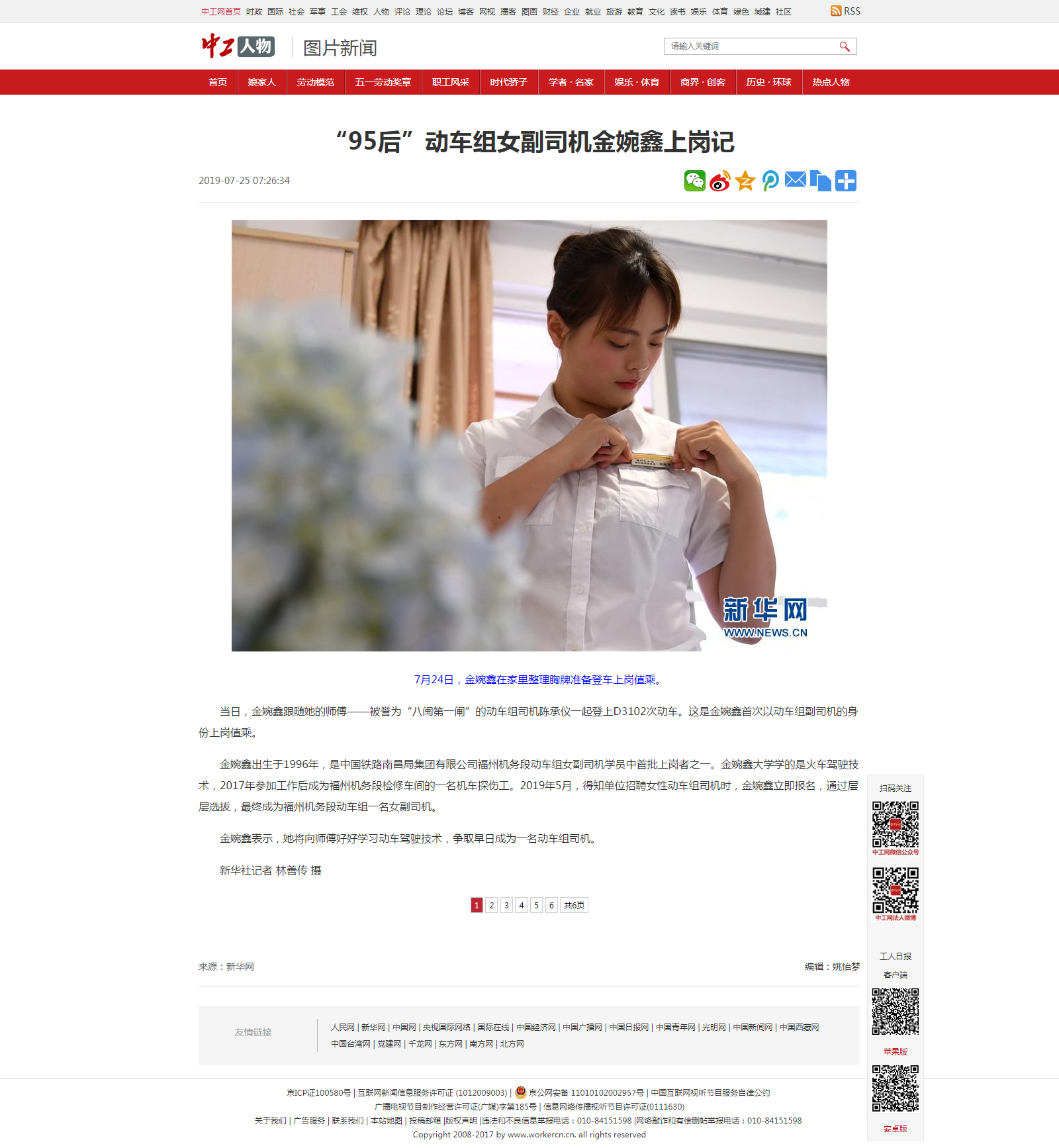 近期,《新华网》《中工网》《中国经济网》等多家媒体以“‘95后’动车组女副司机金婉鑫上岗记”为题,报道我校铁道机车专业2017届毕业生金婉鑫考取全国首批高铁“女副司机”并走上新岗位的感人事迹。