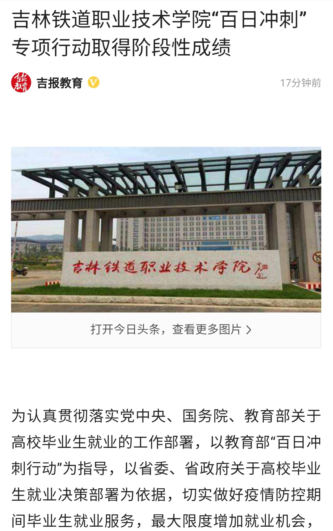 7月24日,《吉报教育》以“www.yuebo136.com “百日冲刺”专项行动取得阶段性成绩”为题,对我校就业工作进行了报道。