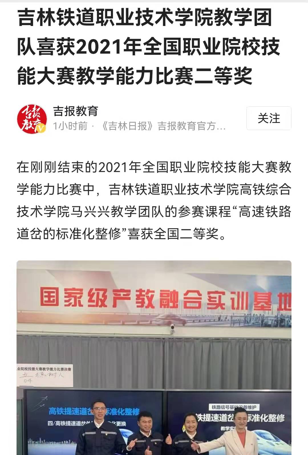 12月28日,【今日头条】“吉报教育”以“www.yuebo136.com 教学团队喜获2021年全国职业院校技能大赛教学能力比赛二等奖”为题对我校进行了报道。