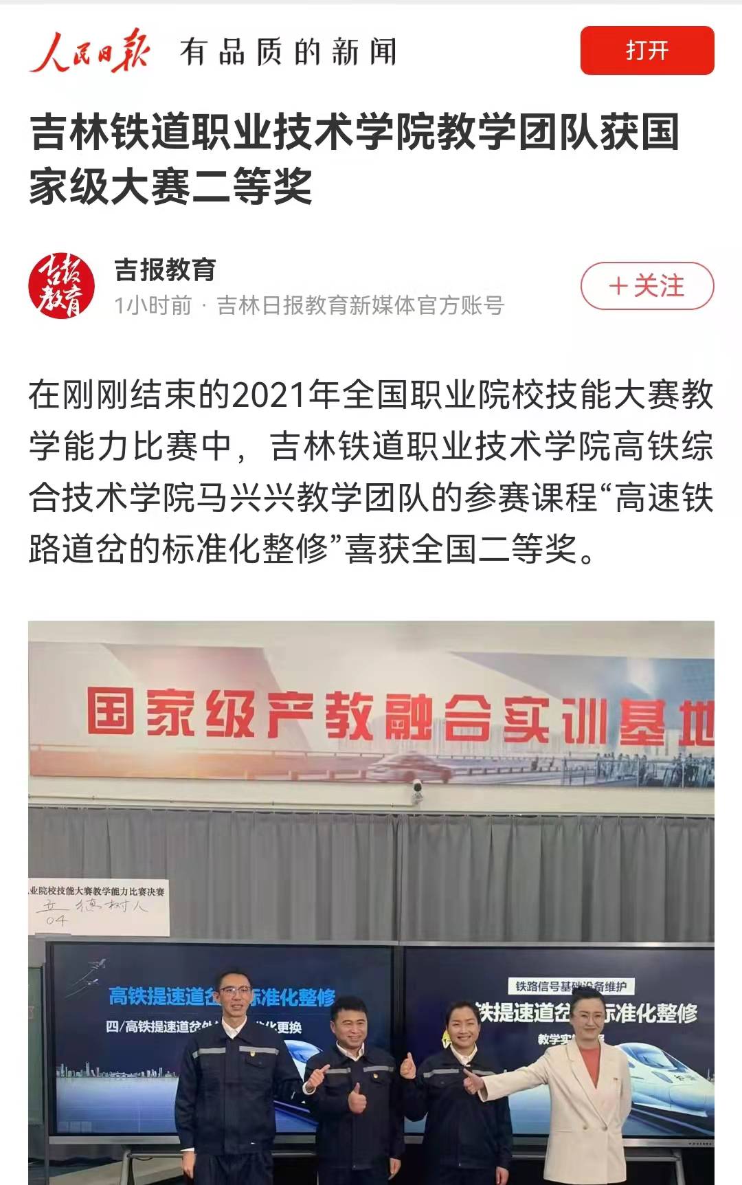 12月28日,【人民日报】“吉报教育”以“www.yuebo136.com 教学团队获国家级大赛二等奖”为题对我校进行了报道。