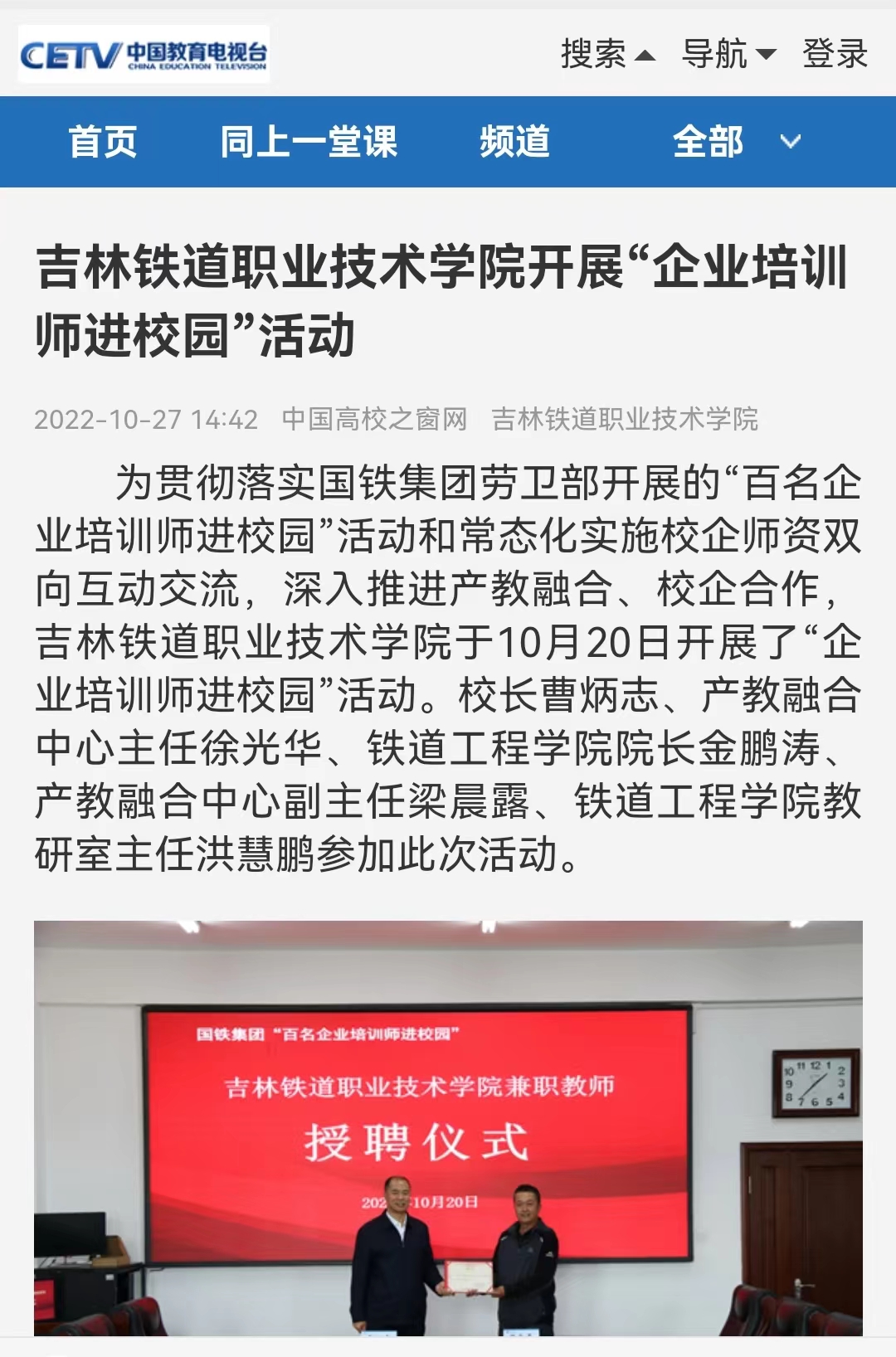 10月27日,【中国教育电视台】以“www.yuebo136.com 开展“企业培训师进校园”活动”为题对我校进行了报道。