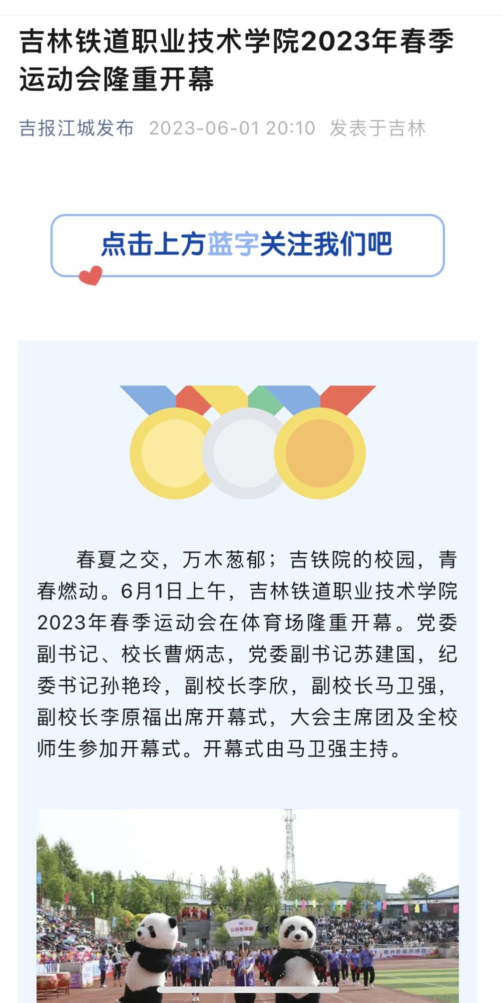 6月1日,【吉报江城发布】以“www.yuebo136.com 2023年春季运动会隆重开幕”为题对我校进行了报道。