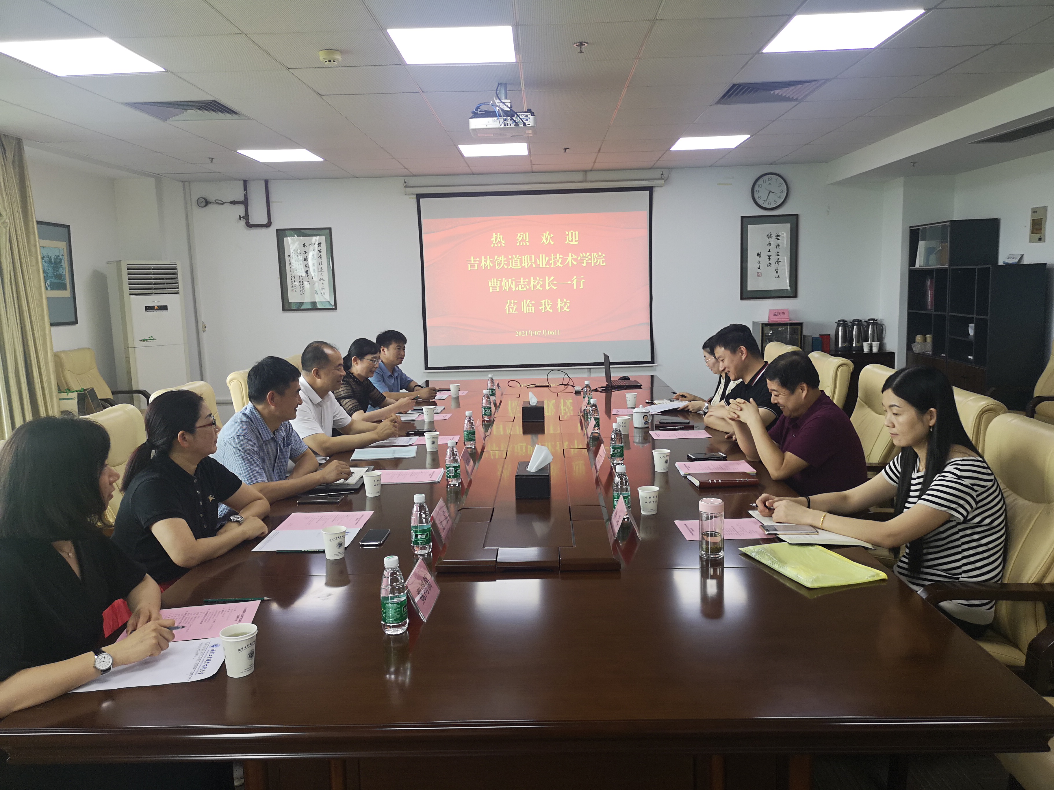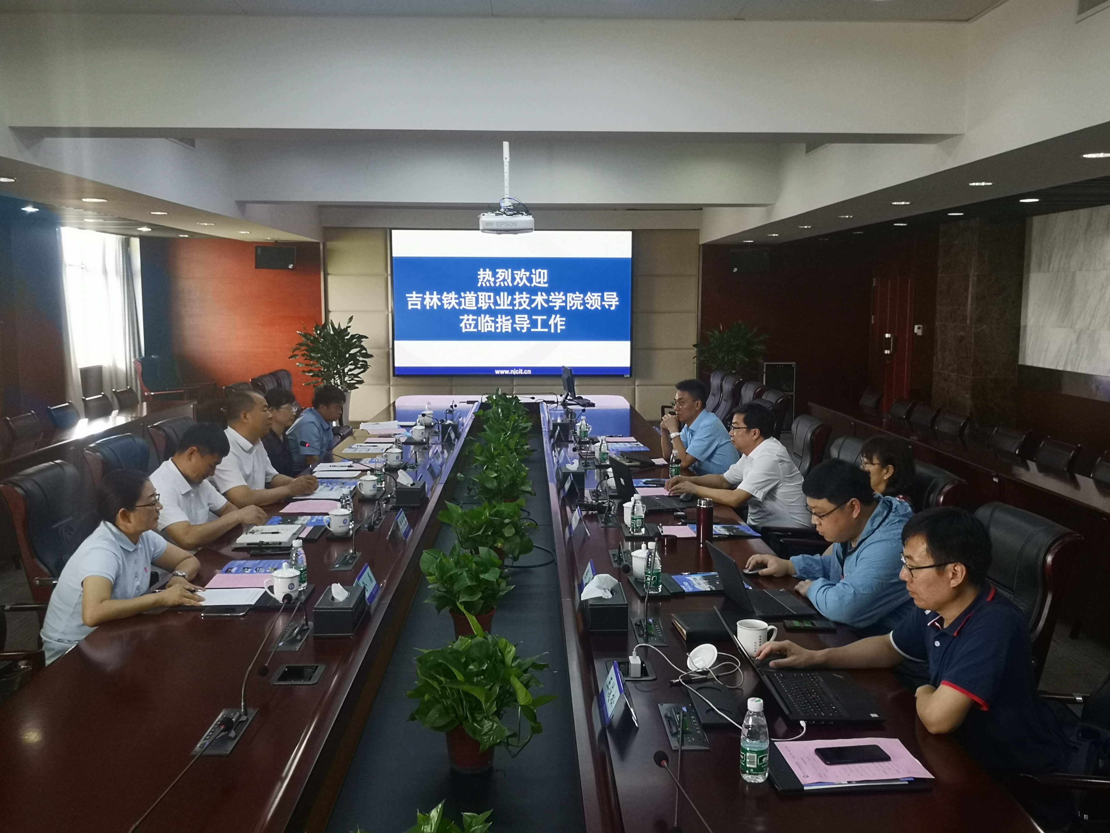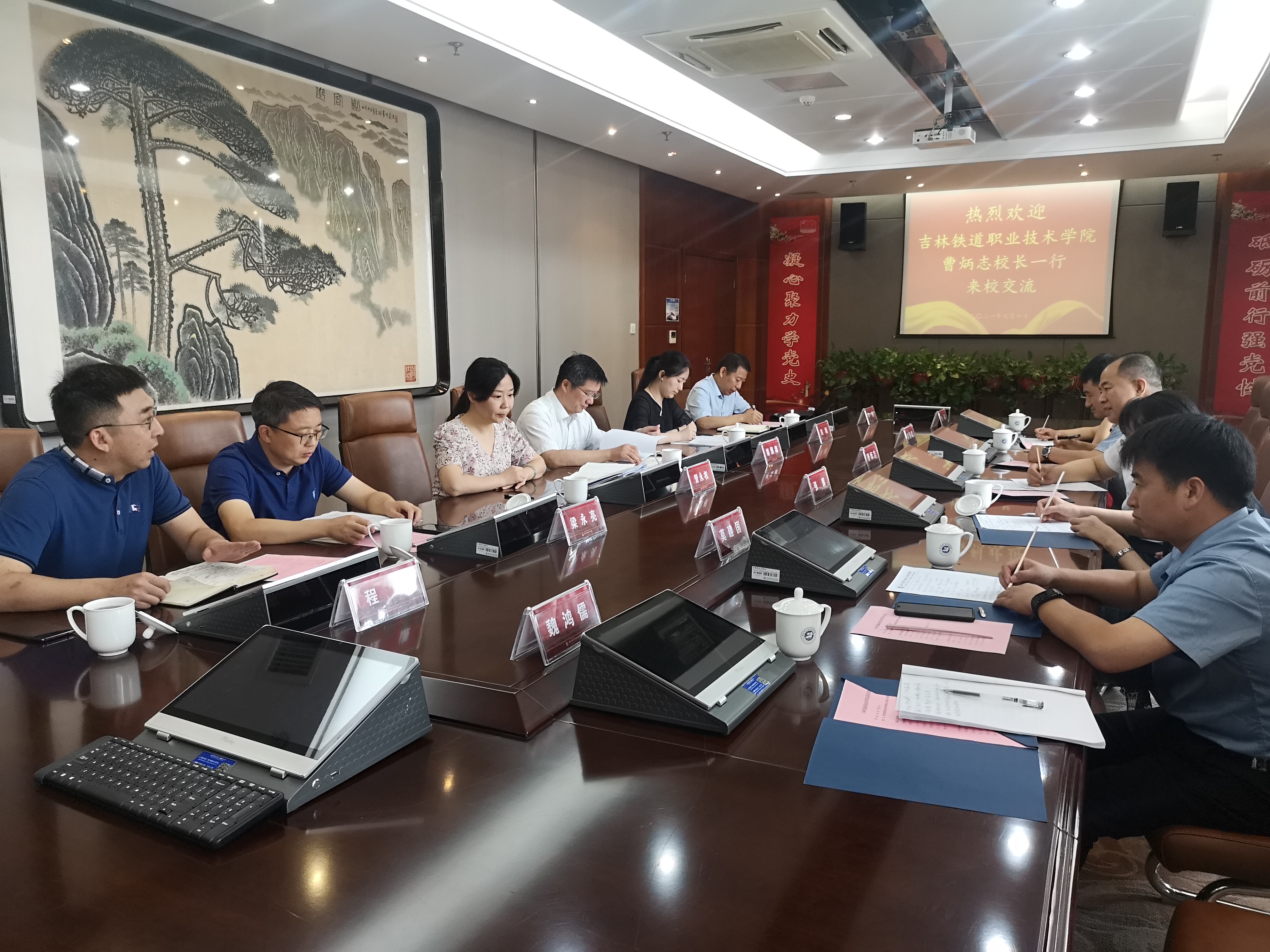 在南京铁道职业技术学院,受到了党委书记钱吉奎、校长都国雄、教务处处长管永权、人事处处长赵婧、产教融合处处长梁永亮、运输管理学院院长程谦、机车车辆学院院长华亮的热情接待,在座谈会上都国雄校长介绍了南京铁道职业技术学院的基本情况、发展历程及办学成果,双方还就“双高计划”建设、实习实训基地建设、产教融合校企合作、省级研究中心与市级工程中心建设、绩效工资分配等工作进行了深入交流。
