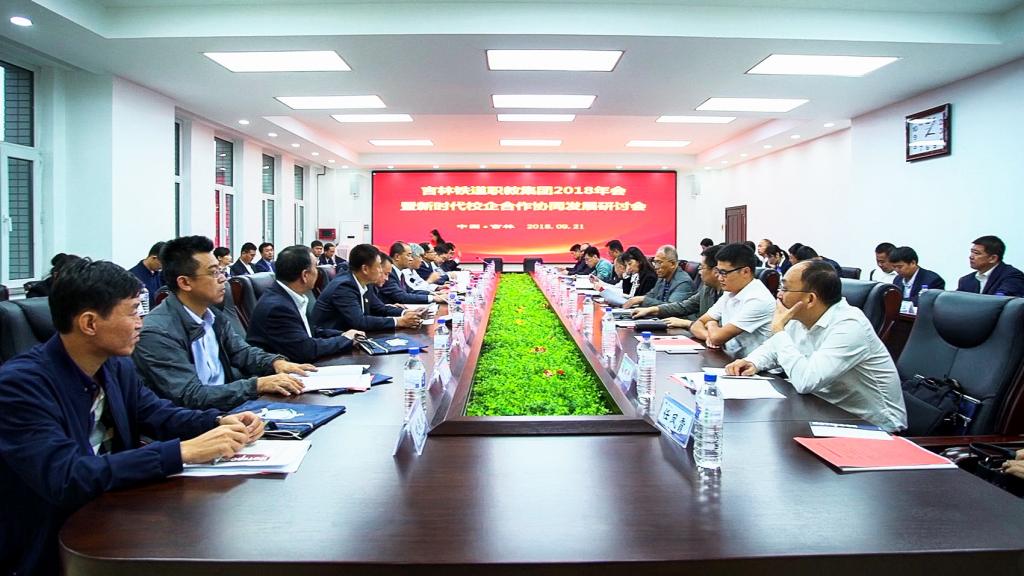 2018年9月21日15:20,在我院迎来建校70周年华诞之际,吉林铁道职业教育集团2018年会暨新时代校企合作协同发展研讨会在学院办公楼第二会议室隆重召开。