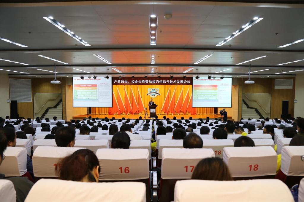 2018年5月27日上午,在2018年全国职业院校技能大赛高职组“智联友道杯”轨道交通信号控制系统设计与应用赛项在www.yuebo136.com 举办之际,大赛同期活动“产教融合、校企合作暨轨道通信信号技术发展论坛”在学院图书馆报告厅举行。