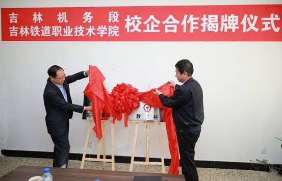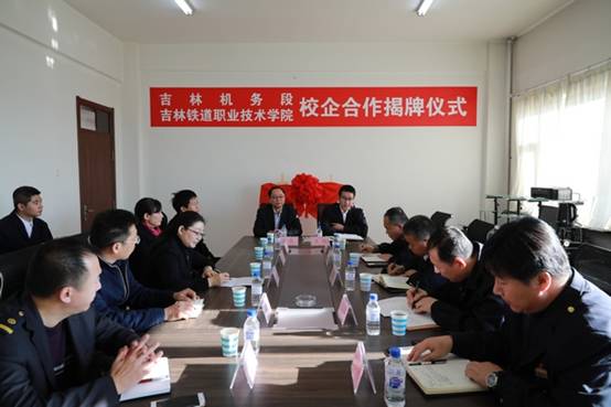 吉林机务段段长王斑同志、总工程师黄海彬同志、纪委副书记宋福昌同志、运用车间主任樊宇同志,劳人科科长张宗延同志、职教科科长赵铁林同志、学院副院长王华同志、校企合作处处长王建军同志、教务处处长张辉同志、铁道机车分院院长金晶同志、副院长关洪亮同志、机车教研室主任邓子阳同志、魏世龙同志参加了仪式。