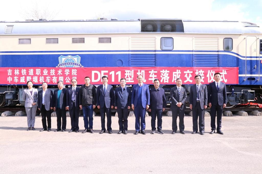 5月6日,我校和中国中车集团戚墅堰机车有限公司在校火车头广场联合举行了“东风11型机车落成交接仪式”。省教育厅巡视员、副厅长战高峰,吉林省教育厅职成处副处长姜云东出席了交接仪式。出席仪式的还有吉林电子信息职业技术学院院长陈宝财,吉林市教育局调研员孙伟国,吉林市教育局职成处处长李智,中车戚墅堰机车有限公司国内事业部经理周海,学校党委书记胡越平,党委副书记、校长曹炳志,副校长王华,党委副书记徐彤宝,副校长田雷,纪委书记苏春年,副校长李欣。交接仪式由铁道机车学院院长金晶主持。
